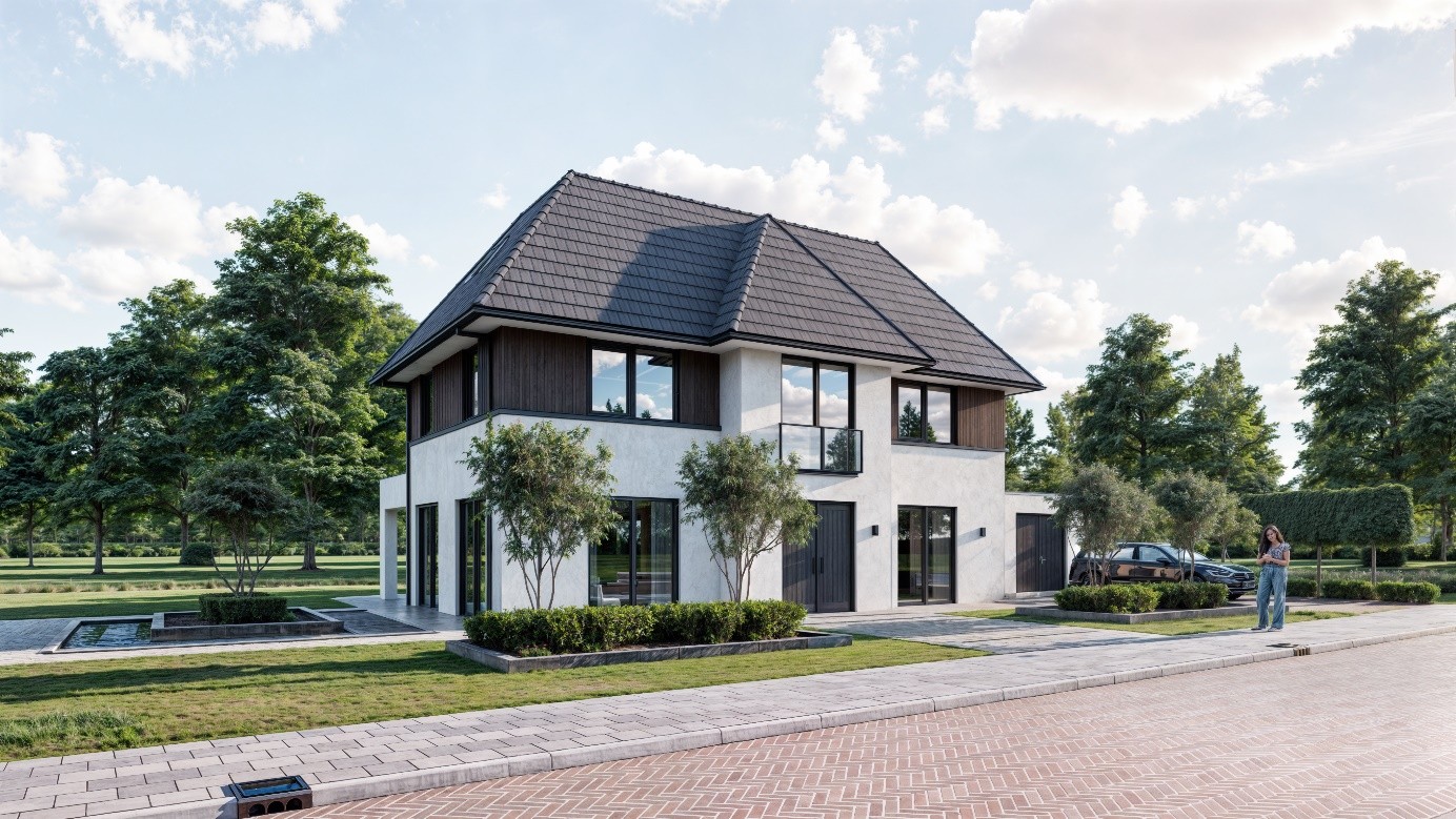 De landelijke bouwstijl ademt warmte en rust. Vaak uitgevoerd met natuurlijke materialen zoals hout en baksteen, en een ontwerp dat perfect past in een groene of ruimtelijke omgeving.
